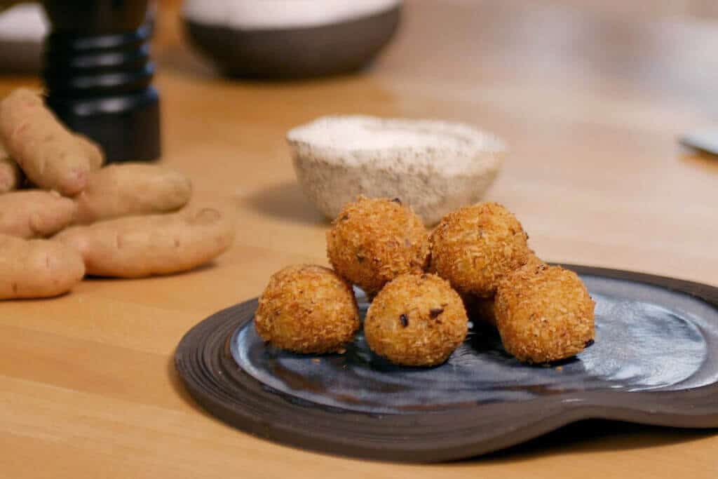 Les Cornes de Gattes en Cromesquis au Jambon Fumé sont une délicieuse variation des croquettes traditionnelles belges. La Corne de Gatte est une variété ancienne cultivée en Wallonie et principalement dans les Ardennes. Cette pomme de terre à la forme distincte évoquant une corne a conquis les cuisiniers par sa chair ferme et son goût délicat. Cette recette au Jambon Fumé fusionne la texture crémeuse de cette pomme de terre avec l’arôme fumé du jambon, offrant ainsi une expérience gustative unique et authentiquement belge. Découvrez la recette des cromesquis ici.