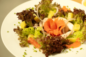 Salade de pommes de terre aux petits légumes et pesto d’herbes fraîches