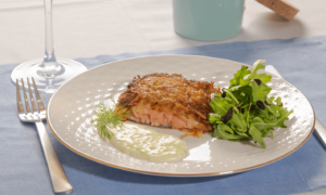 Gratin de pomme de terre au fromage et garniture de cornflakes